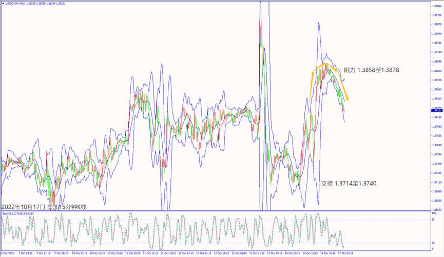 上周五(14日)欧洲副央行行长下调2023年欧元区GDP利淡油价和加元,美加若守住5日均线1.3813,建议可短多操作。前天(15日)欧洲央行管委诺特预期未来几个月进一步加息利好欧元,欧美一旦突破小时布林带上轨线0.9760,建议可短多操作。昨天(16日)英国新任财长大刀阔斧废除前任财长调整的税率有望利好英镑,镑美若突破30日均线1.1254,建议可短多操作。