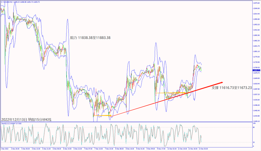 昨天(12日)美国财长耶伦表示未来一年通胀将大幅下降,市场乐观美联储加息逐步趋缓,带动道琼斯和纳指扩大上涨超1%。预期今天(13日)欧元区经济景气指数不佳,德指若跌破5日均线14,314,建议可短空操作。预期今天美国公布CPI年率下降利好股指,纳指若守住小时布林带中轨11,671,建议可短多操作。