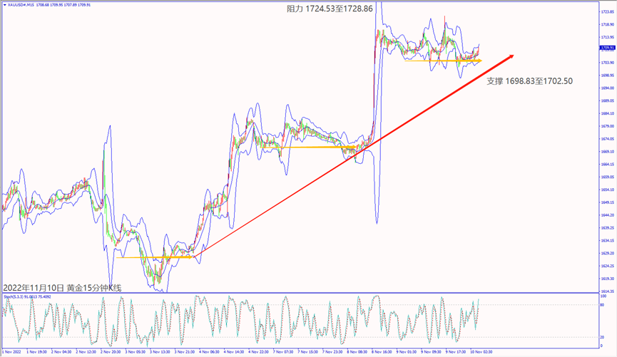 昨天(9日)美元指数逆势大涨,造成黄金价格从当日高点下跌约20美元,尾盘守在1705美元附近整理。预期今天(10日)美国公布CPI数据利淡美元,黄金价格若守住5日均线1696美元,建议可短多操作。
