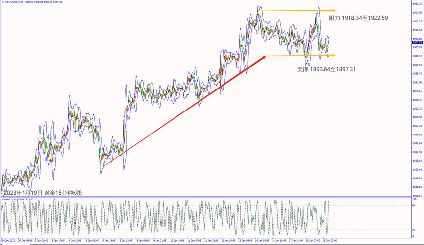 周三(18日)日本央行维持宽松利淡日元和利好美元,造成黄金价格回落至1900.00关口附近盘整。欧洲央行预期维持加息,以及美国经济数据利淡美元大跌,带动黄金价格涨近30美元。多位美联储官员预期持续加息利好美元涨近百点,也让黄金价格回落1905美元附近整理。
