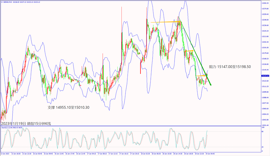 昨天(18日)美国公布零售数据不佳,以及多位美联储官员预期持续加息,造成道琼斯和纳指皆下跌近2%。预期今天(19日)欧洲央行货币会议纪要重申加息,德指冲不过小时布林带中轨15,155,建议可短空操作。预期今天美国公布经济数据大都不佳,纳指一旦跌破60日均线11,383,建议可短空操作。