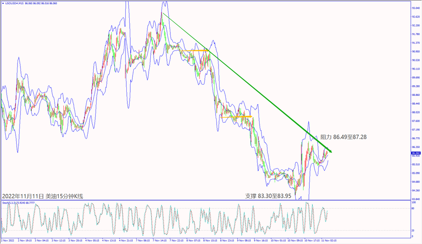 昨天(10日)美国公布CPI数据下降,造成欧美股指飙涨逾4%。欧洲央行下调今年下半年和2023年经济增长,一度造成美油价格回测84.00关口。晚间美国公布CPI利好股指大涨,带动美油价格涨超2%。周五(11日)清晨乌克兰总统泽连斯基宣布收复南部41个定居点,市场抛售美油多仓造成价格回落至85.50美元附近整理。