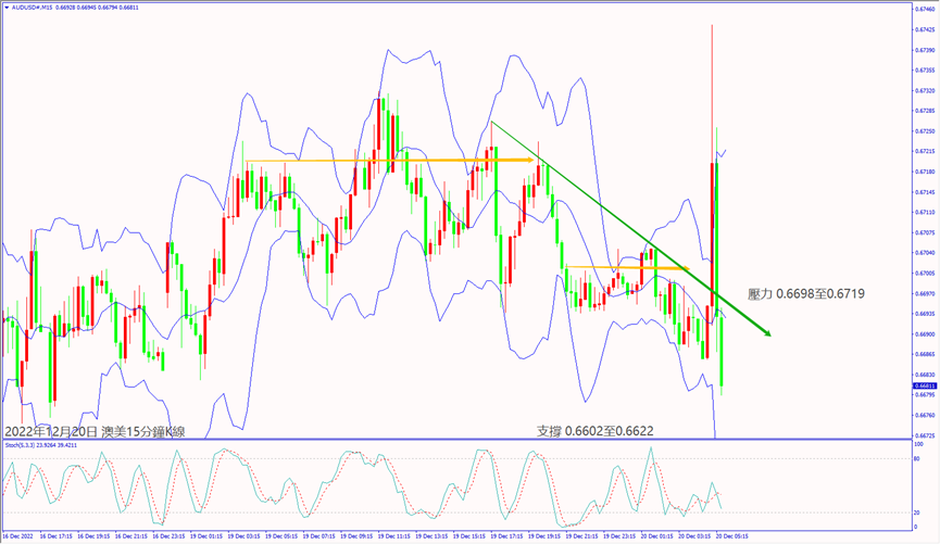 昨天(19日)受到上週歐洲央行管委預期2023年連續加息50個基點預測影響,亞洲市場拋售美元造成指數下跌約70個點,推升歐美和鎊美皆漲逾70個點。晚間歐洲央行管委Kazimir稱經濟衰退不足以應對通脹,以及法國財長和德國財長聯合聲明表示美國《降低通貨膨脹法案》中的例外情況應涵蓋歐盟等夥伴利淡歐元,造成歐美、鎊美和紐美皆跌超60個點,推升美元指數上漲約80個點,帶動美日和美加皆漲逾70個點。美元指數尾盤出現賣壓回落至104.30附近盤整,帶動歐美和鎊美再度上漲。