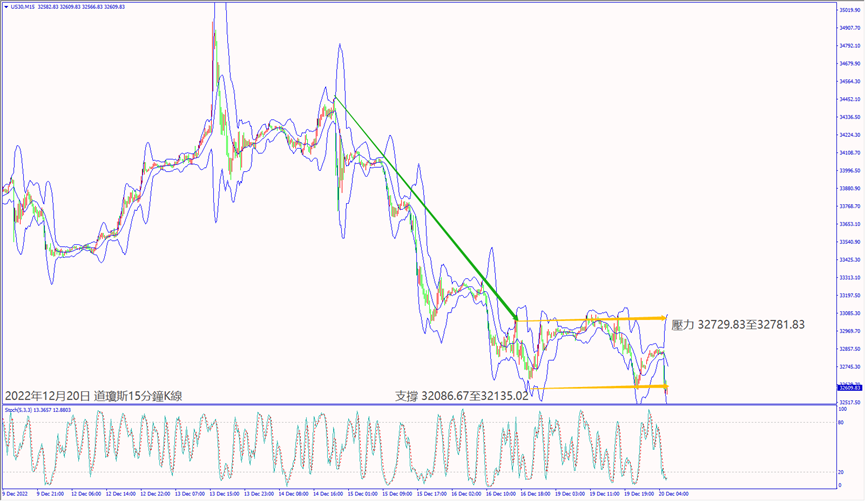 昨天(19日) 法德財長聯合聲明表示美國對降低通脹法案應排除歐盟等國,利淡道瓊斯和納指下跌近2%。預期今天(20日)德國公佈PPI數據下降,德指一旦突破小時布林帶上軌線13,976,建議可短多操作。預期今天美國公佈經濟數據大都不佳,道瓊斯若摜破240日均線32,751,建議可偏空操作。