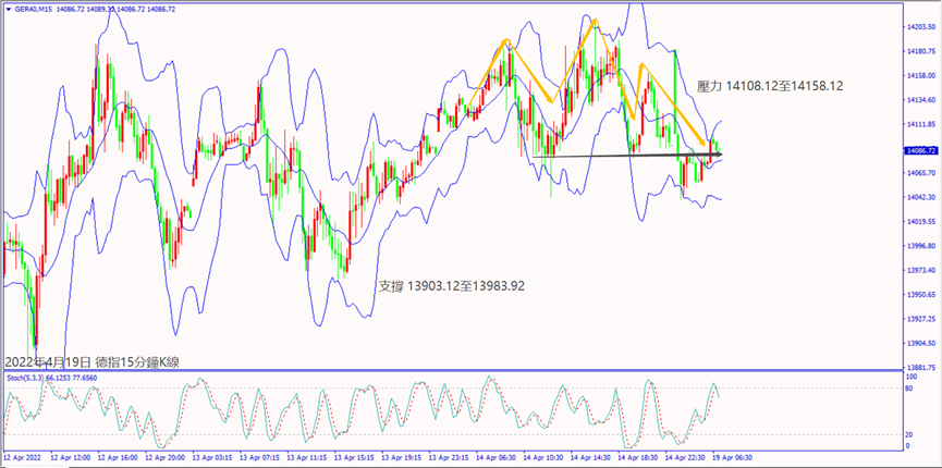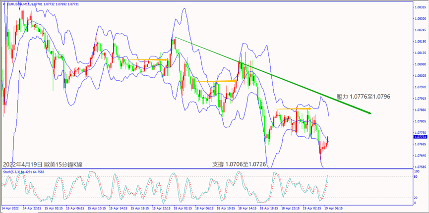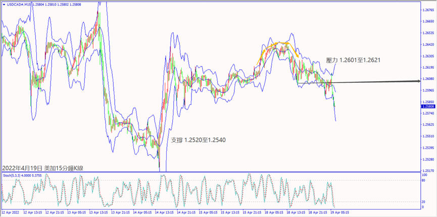 昨天(18日)俄羅斯對烏東採取新攻勢,美國國防部官員透露對烏克蘭運送軍援,早上亞洲市場回補美元帶動指數上漲約20個點。今天(19日)早上澳洲聯儲會議紀要稱澳大利亞的財務狀況仍然非常寬鬆,造成澳美從早上高點轉空下跌。預期今天世界經濟展望報告對戰爭衝擊經濟示警,可能造成歐美和鎊美擴大跌勢。