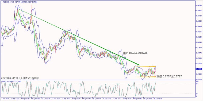 昨天(18日)俄羅斯對烏東採取新攻勢,可能帶動油價連續上漲利好加元,美加一旦跌破30日均線1.2596,建議可短空操作。昨天德國衛生部長警告新冠病毒新變種威脅,歐美沖不過小時布林帶上軌線1.0786,建議可偏空操作。今天(19日)新西蘭聯儲主席表示未來幾個季度將近一步加息,紐美一旦突破小時布林帶上軌線0.6736,建議可短多操作。