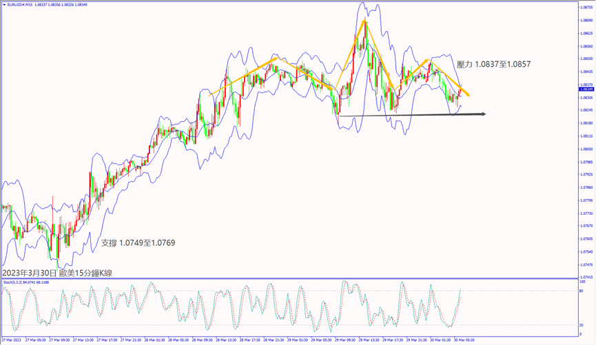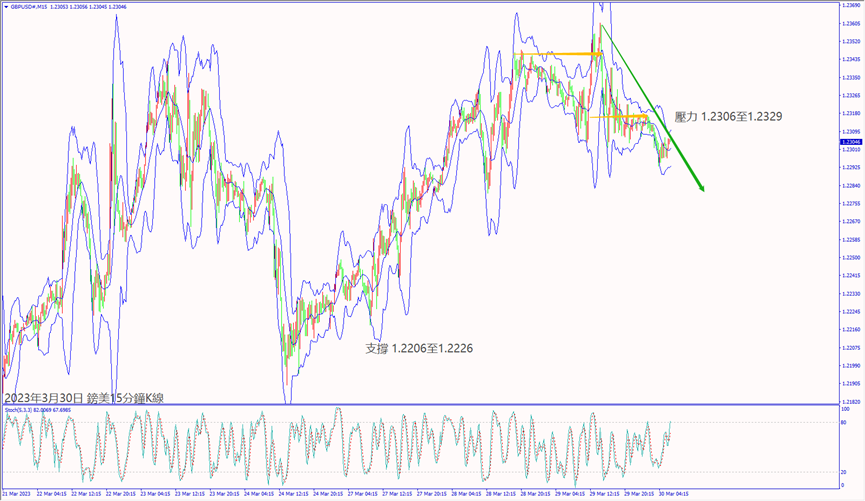 昨天(29日)歐美官員對銀行問題表示影響趨緩,利好歐美股指皆漲超1%。預期今天(30日)歐元區公佈經濟數據大都不佳,德指若跌破小時布林帶下軌線15,335,建議可短空操作。預期今天美國公佈經濟數據大都利好,納指若守住5日均線12,758,建議可短多操作。