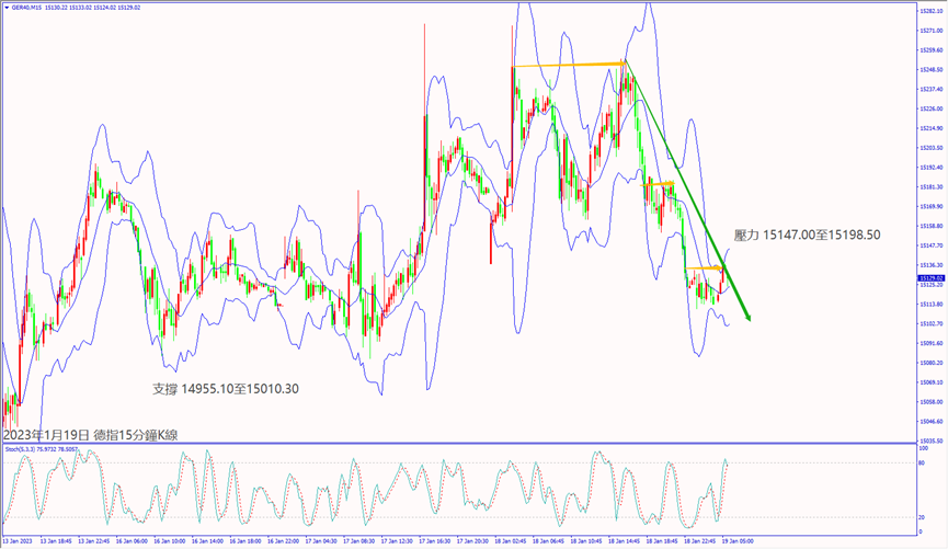 昨天(18日)美國公佈零售數據不佳,以及多位美聯儲官員預期持續加息,造成道瓊斯和納指皆下跌近2%。預期今天(19日)歐洲央行貨幣會議紀要重申加息,德指沖不過小時布林帶中軌15,155,建議可短空操作。預期今天美國公佈經濟數據大都不佳,納指一旦跌破60日均線11,383,建議可短空操作。